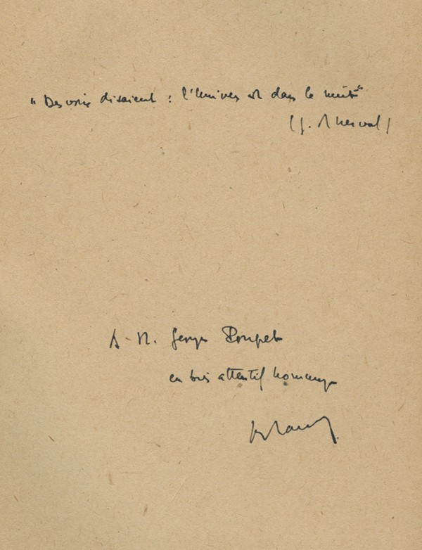 Le Livre du PartageEdition originale. Exemplaire du tirage courant (après 22 ex. sur vélin pur chiffon de Rives). Envoi autographe signé : "Pour Maurice...