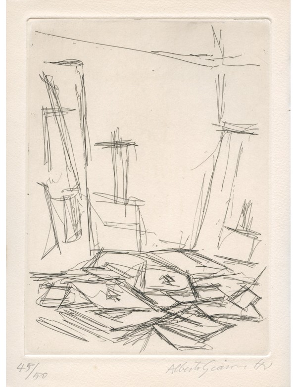 In-8 (20 x 14,5 cm), broché, couverture blanche imprimée en noir, non paginé, 26 ff. n. ch. dont l'eau-forte de Giacometti en frontispice
