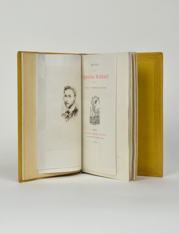 Exemplaire à toutes marges, très bien relié, de ce recueil posthume (l'auteur mourant à 24 ans de la tuberculose) regroupant toute l'oeuvre connue d'Ephraïm Mikhaël, savoir :