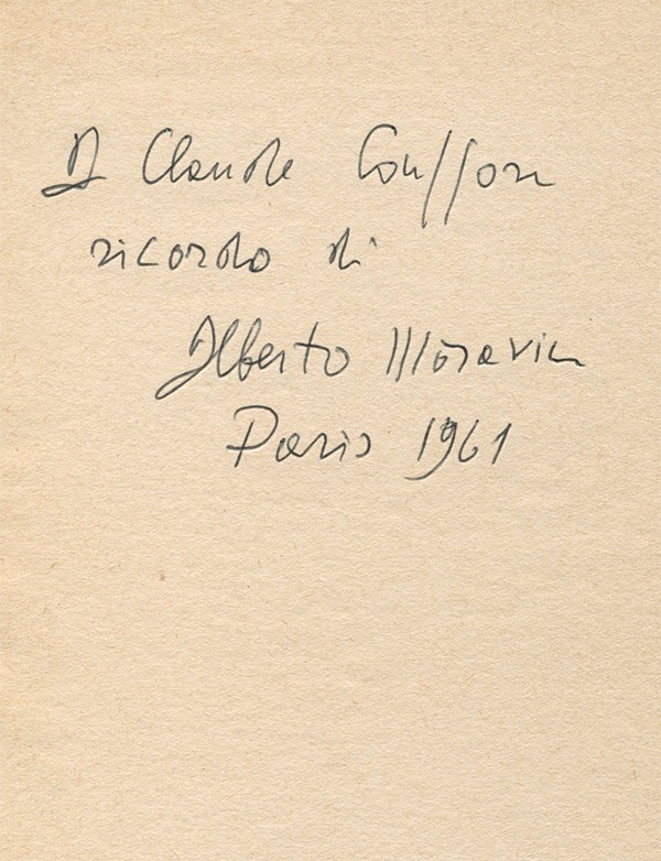 Envoi autographe signé de l'auteur : "A Claude Couffon / Ricordi di / Alberto Moravia / Paris 1961".