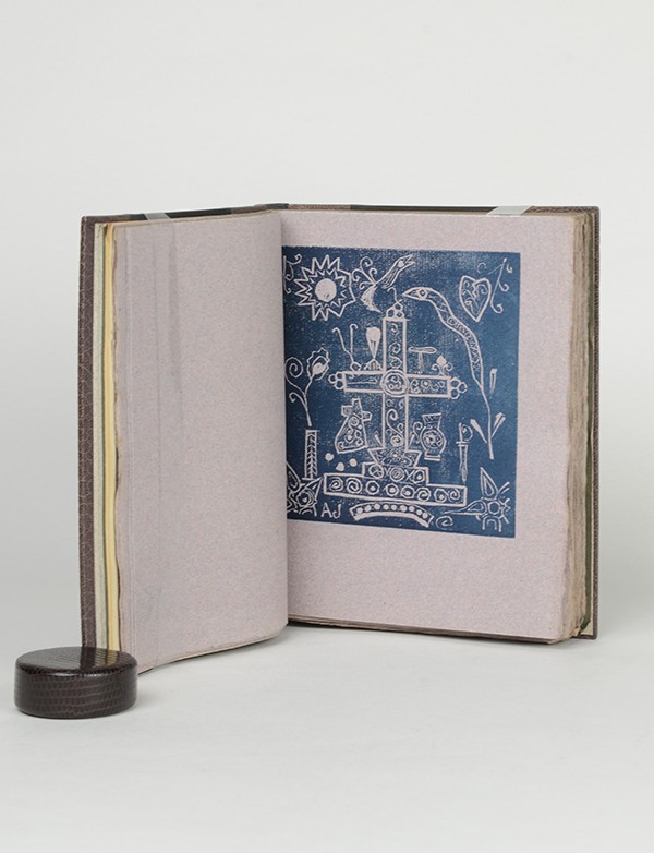 L'illustration comprend 12 bois, la plupart gravés par Jarry dans l'esprit des bois de l'Ymagier, tirés en bleu, bistre et noir, dont le blason doré en couverture.