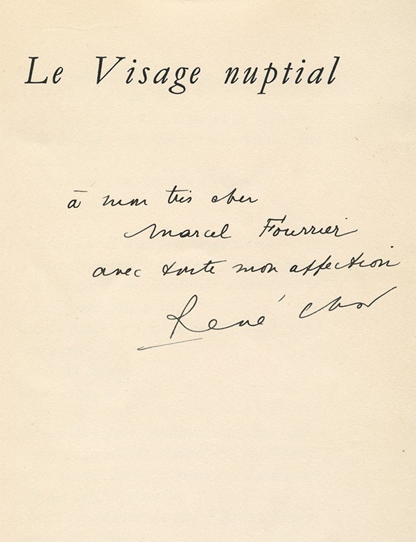 Envoi autographe signé de l'auteur : « à mon très cher / Marcel Fourrier / avec toute mon affection / René Char ».