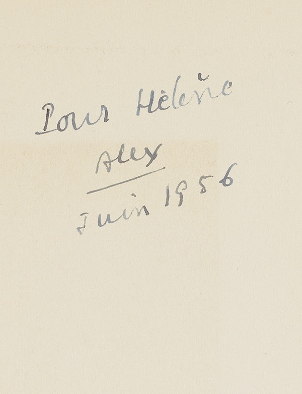 Envoi autographe signé du traducteur à son épouse : « Pour Hélène / Alex / juin 1956 ».